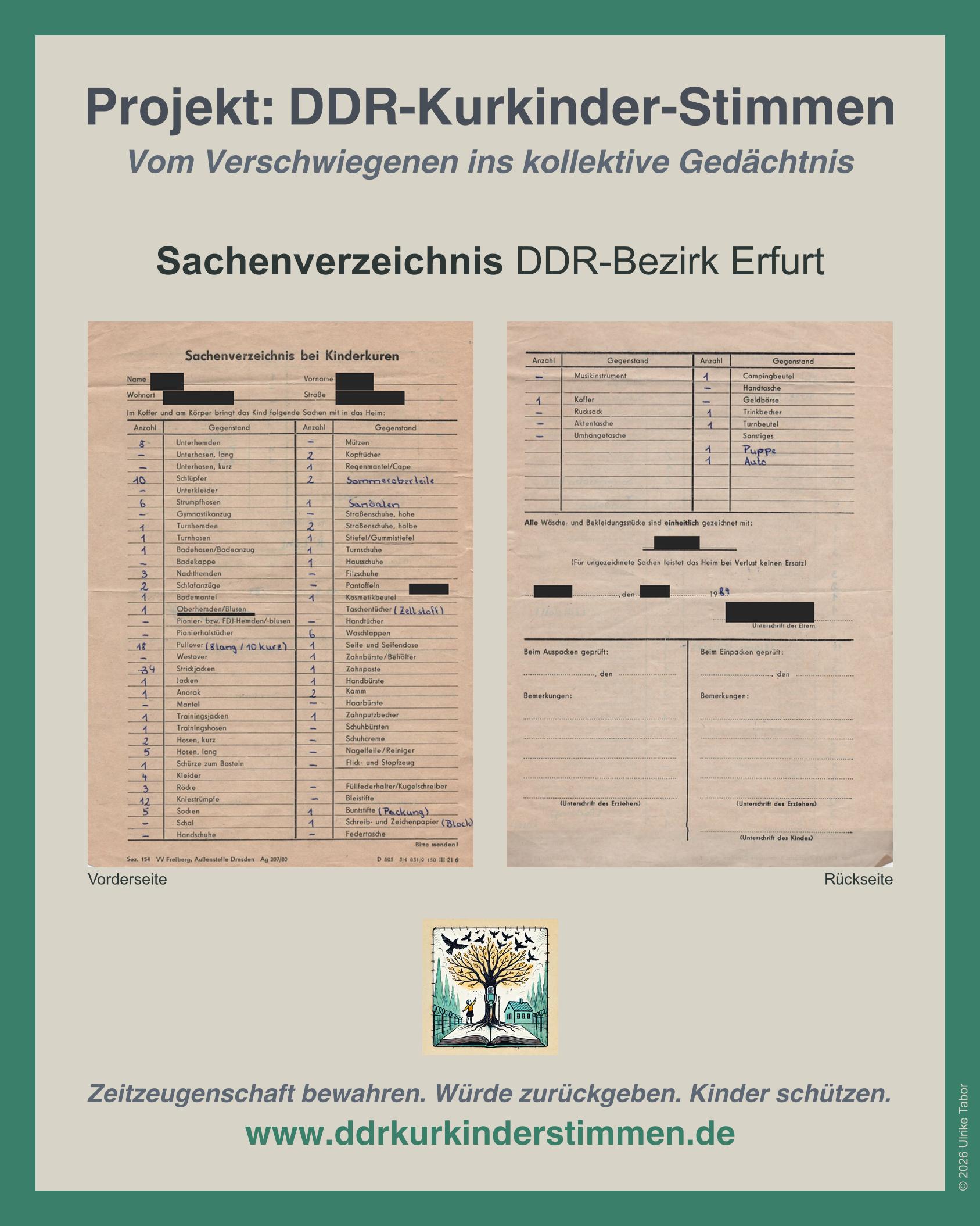 Das Projekt mit künstlerisch-dokumentarischem Fokus wird ehrenamtlich und unabhängig betrieben. Ziel ist die Aufarbeitung, Aufklärung und Dokumentation historischer Erfahrungen der Kinderkuren in der DDR bis zur Nachwendezeit, um zukünftiges Unrecht zu verhindern.